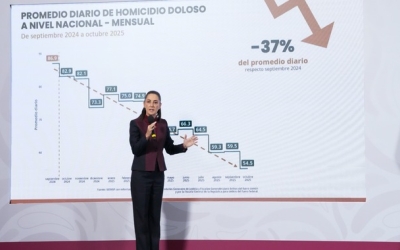 Sheinbaum celebra reducción del 37% en homicidios dolosos desde su llegada a la presidencia.
