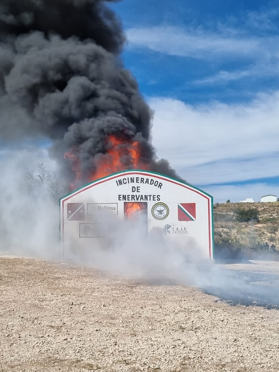 FGR incinera más de 1.6 toneladas de metanfetamina y destruye equipo criminal en Zacatecas