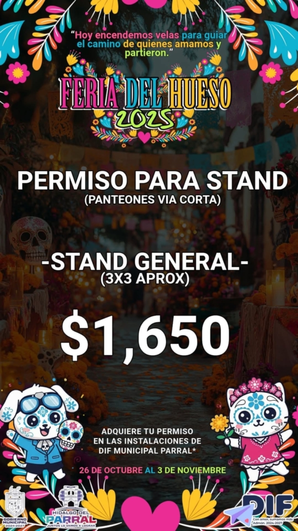 Con el fin de garantizar una amplia participación, el DIF Municipal ha dispuesto stands en puntos estratégicos. Los comerciantes interesados podrán asegurar su lugar en los panteones de la Vía Corta por un costo de $1,650 pesos, o en la Avenida Tecnológico por $2,750 pesos.