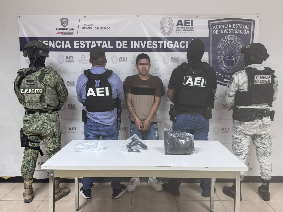 Manuel S. A., de 21 años de edad, fue detenido este martes en la colonia Infonavit Tecnológico, como resultado de los operativos interinstitucionales desplegados por la Agencia Estatal de Investigación (AEI), la Guardia Nacional (GN) y la Secretaría de la Defensa Nacional (SEDENA).
