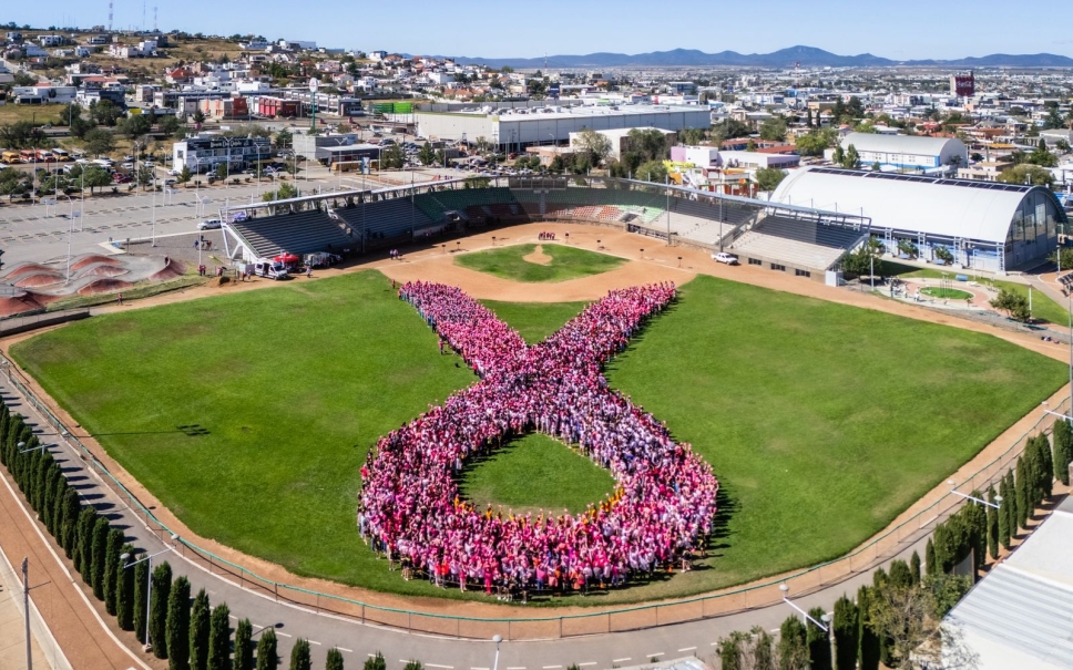 La cita fue en el estadio Manuel “Loco” Rentería, donde acudió personal de las distintas unidades de investigación de la Fiscalía y del CEJUM. El momento cumbre fue la formación de un lazo gigante por parte de todos los asistentes, un poderoso símbolo de apoyo, concientización y solidaridad con quienes han sido afectados por la enfermedad.