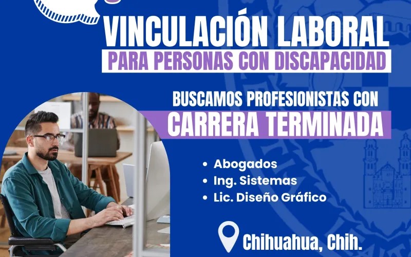 - Ciudad de Chihuahua: Se buscan profesionales con formación en Derecho, Ingeniería en Sistemas y Diseño Gráfico.