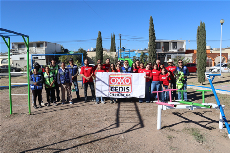 Gobierno municipal y OXXO rehabilitan el parque Volga para el beneficio de Riberas de Sacramento.