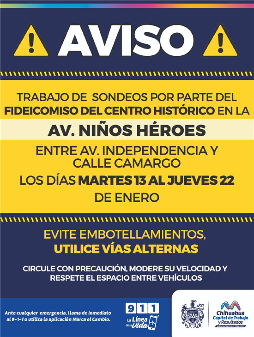 Inician trabajos de sondeo en avenida Niños Héroes; piden tomar vías alternas.