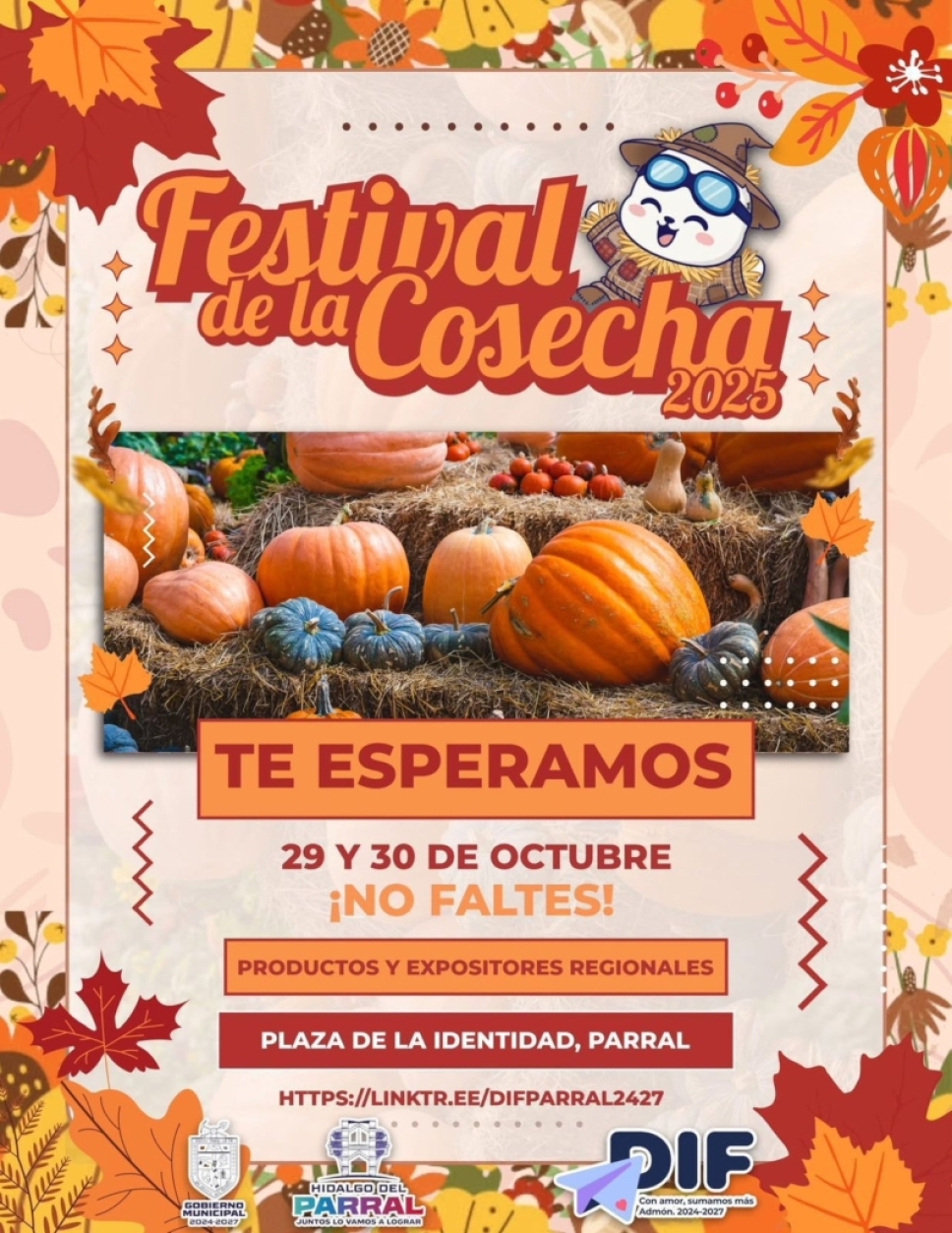 El DIF Municipal y el Gobierno de Parral se preparan para una nueva edición del Festival de la Cosecha 2025, un evento diseñado para celebrar la riqueza del campo, impulsar la economía local y ofrecer un espacio de entretenimiento familiar. La cita para los parralenses será los días 29 y 30 de octubre en la emblemática Plaza de la Identidad.