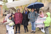 De acuerdo con la información proporcionada, se distribuyeron paquetes de cobijas y hule para resguardar a niñas, niños y personas adultas mayores ante las condiciones climatológicas adversas registradas en la región.