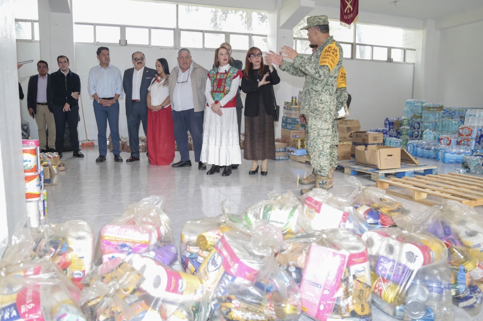 La presidenta Castillo Juárez, acompañada por miembros de la Mesa Directiva y legisladores de diferentes bancadas, hizo la entrega de los víveres al coronel de infantería Álvaro Vázquez Zacarías. Enfatizó que esta es una "muestra de solidaridad con las familias afectadas".