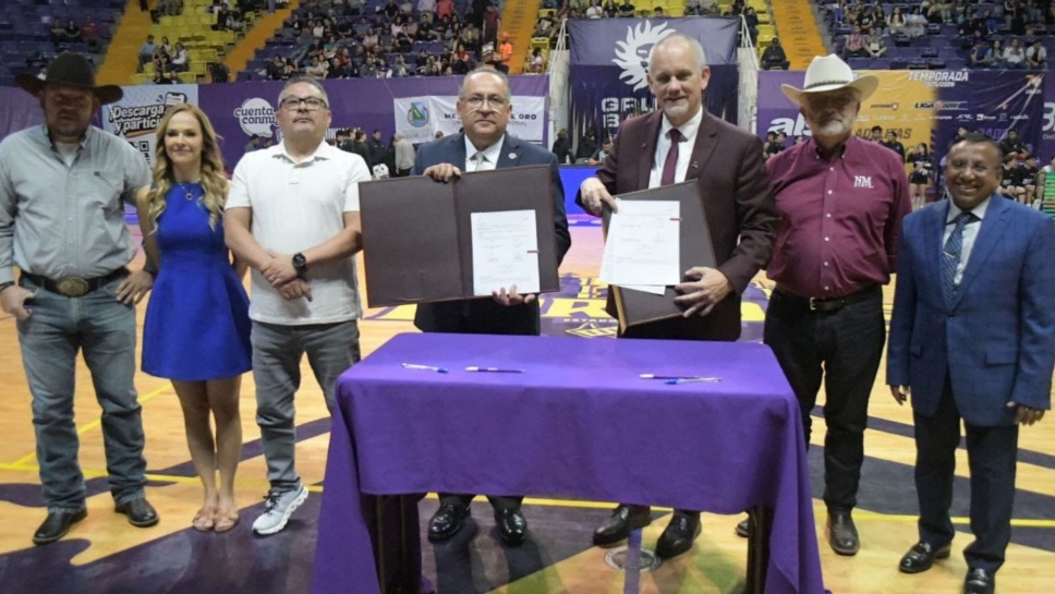 El encuentro deportivo binacional de básquetbol entre los Dorados de la Universidad Autónoma de Chihuahua (UACH) y los Aggies de la New Mexico State University (NMSU) se convirtió en el escenario de un hito académico. En un evento que trascendió la rivalidad deportiva, ambas instituciones formalizaron un convenio de colaboración que permitirá a sus estudiantes obtener programas de doble titulación en áreas estratégicas del sector agropecuario.