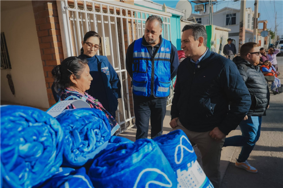 El alcalde Marco Bonilla realizó un recorrido por la colonia Tarahumara, donde hizo entrega de cobijas y despensas a familias de la etnia rarámuri que se encuentran en situación de mayor vulnerabilidad, como parte de las acciones para mitigar los efectos del frío extremo.