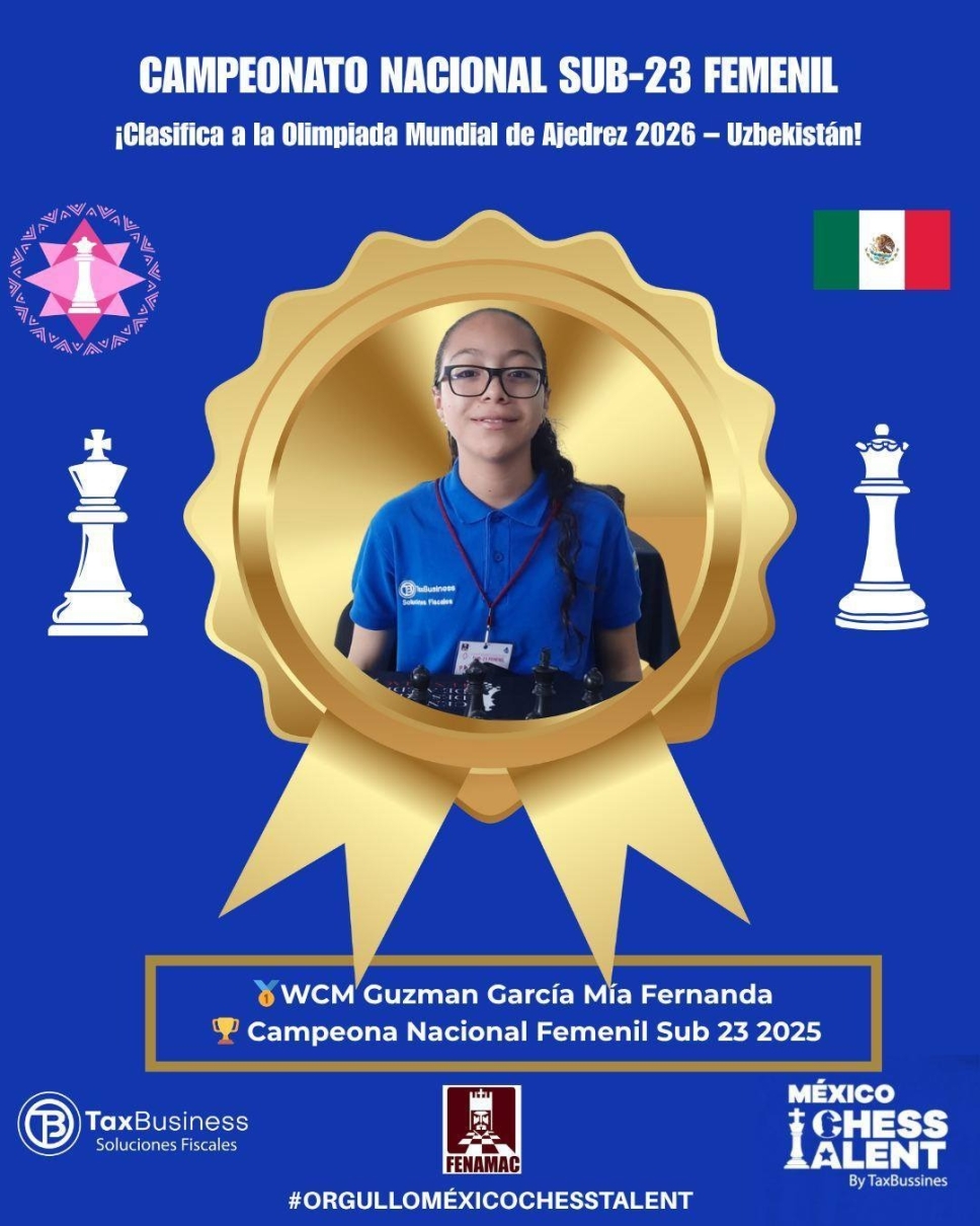 Con un desempeño de 2087 y un aumento de +47 puntos FIDE, Mía no solo cerró un torneo perfecto, sino que también aseguró su lugar en el Equipo Olímpico Femenil que representará a México en la Olimpiada Mundial en Uzbekistán 2026. La joven campeona ya se prepara para sus próximos desafíos, incluyendo el Nacional de Monterrey y el Torneo Internacional Perla del Desierto en Juárez.