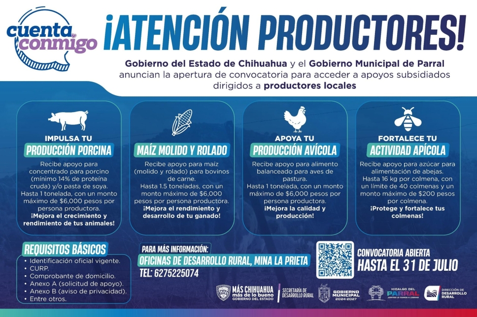 Los interesados en acceder a estos beneficios deben actuar con rapidez y orden. La convocatoria permanecerá abierta hasta el próximo 31 de julio, y toda la gestión se realizará de manera presencial en las oficinas de Desarrollo Rural, ubicadas en la emblemática Mina La Prieta. Para facilitar el proceso, se ha habilitado la línea telefónica 627 522 5074 para resolver dudas y consultar requisitos específicos. Es momento de que los trabajadores de la tierra aprovechen estas herramientas diseñadas para que su esfuerzo rinda más frutos, consolidando a Parral como un referente de productividad y resistencia en el estado.