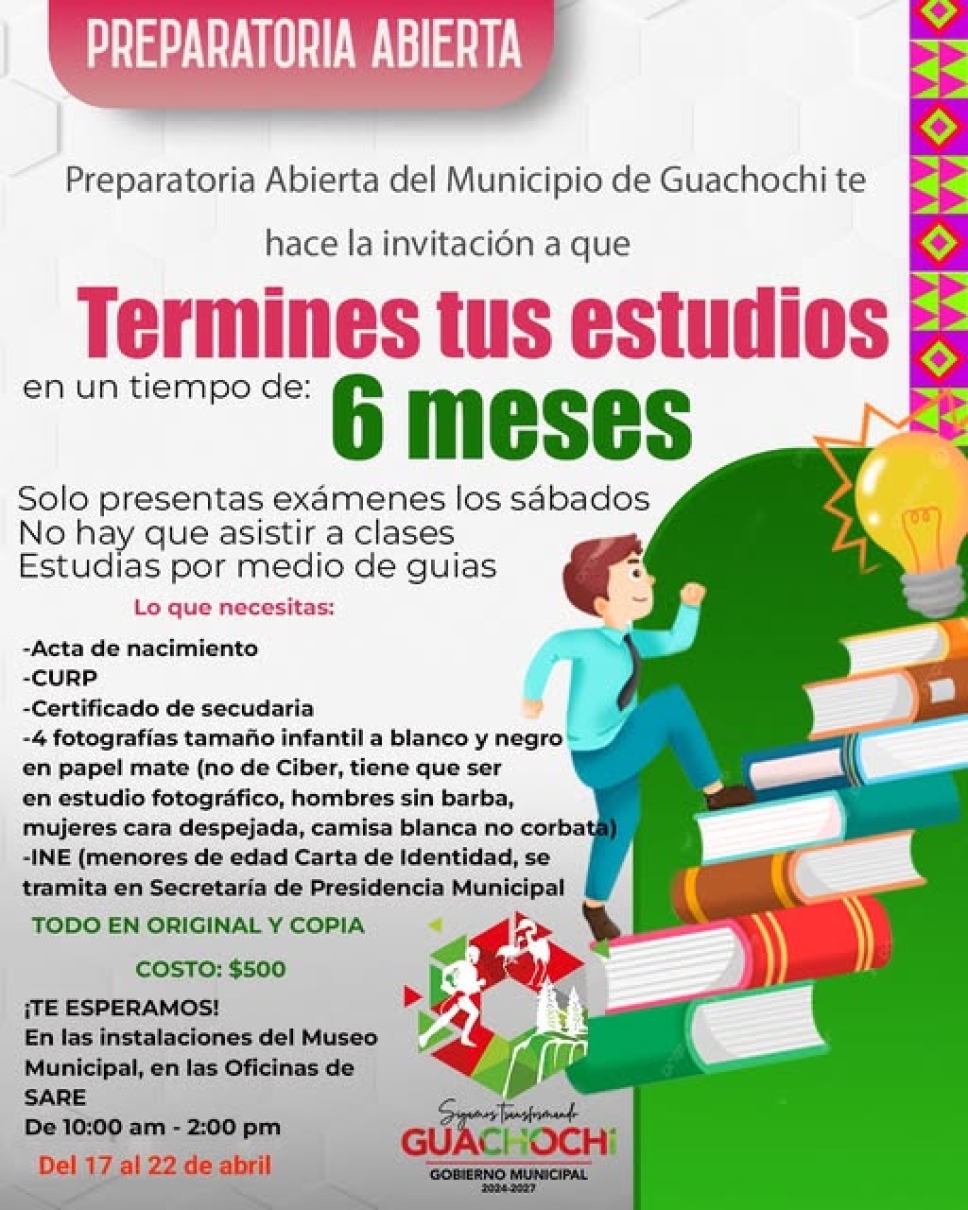 Termina tu preparatoria con un sistema flexible que se adapta a ti en Guachochi.