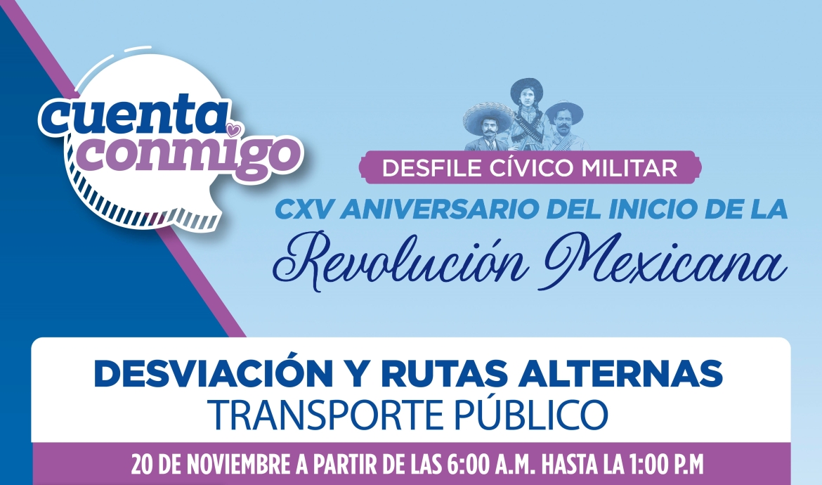 Anuncian modificaciones del transporte modifican 15 rutas por el "Desfile del 20 de Noviembre".