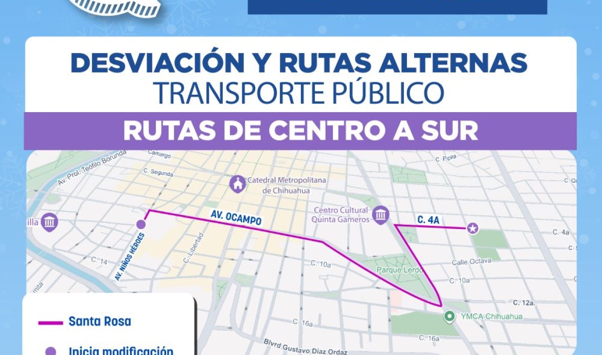 Anuncian desvíos temporales en rutas de transporte por el Encendido del Árbol Navideño 2025.