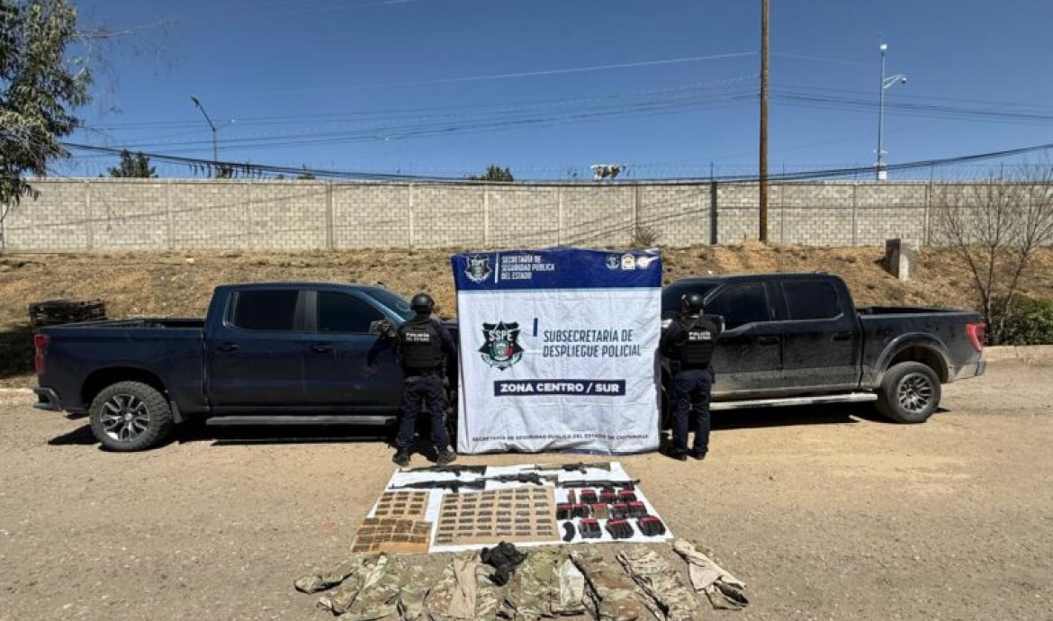SSPE y Sedena decomisan 5 armas largas, equipo táctico y camionetas robadas en operativos de Parral.