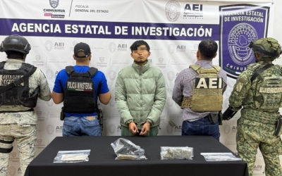 Cae presunto robachicos en Ascensión: Llevaba droga entre sus pertenencias.