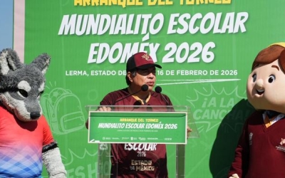 El secretario de Educación Pública, Mario Delgado Carrillo, dio el "banderazo de salida" al Mundialito Escolar 2026...