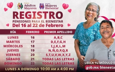 La Secretaría de Bienestar informó que del 16 al 22 de febrero se llevará a cabo el reg
