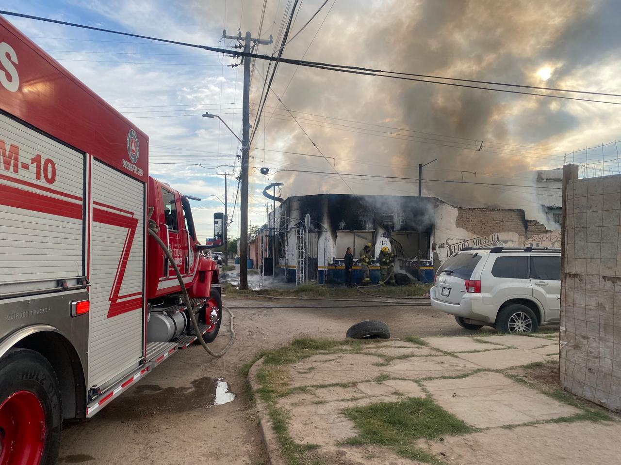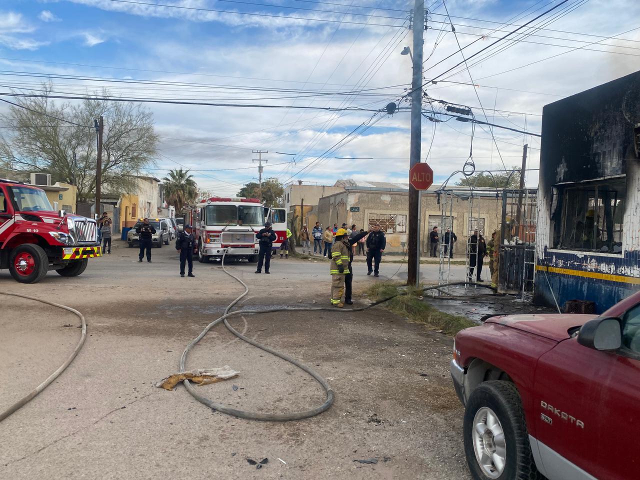 Bomberos controlan incendio en local abandonado de la colonia Melchor Ocampo en Juárez.