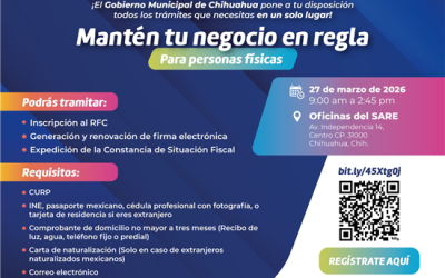 El Gobierno Municipal de Chihuahua, en alianza con el SAT, anunció una nueva edición del programa “SAT en el SARE” para el próximo viernes 27 de marzo.