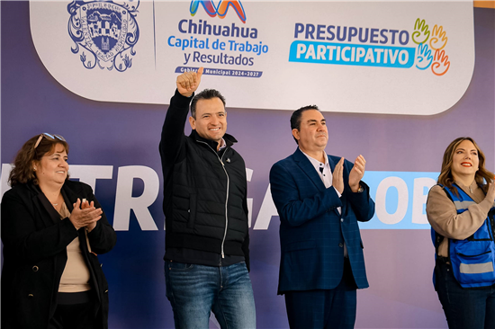 El alcalde Marco Bonilla encabezó la entrega de un domo en la Benemérita y Centenaria Escuela Normal del Estado de Chihuahua, obra seleccionada mediante el Presupuesto Participativo y que beneficiará a estudiantes y docentes al brindar mejores condiciones para actividades académicas, deportivas y cívicas.