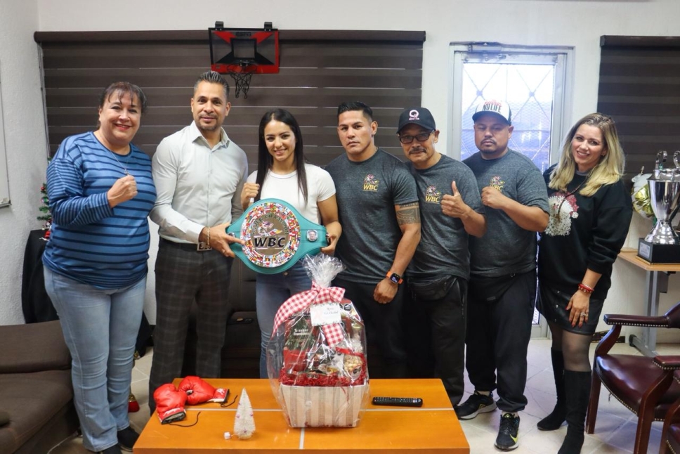 Con un cálido recibimiento por parte de la comunidad deportiva, Diana “La Bonita” Fernández, nueva campeona mundial silver del Consejo Mundial de Boxeo, visitó las instalaciones del IMDEJ, donde el director Juan Escalante dialogó con ella sobre su reciente logro. La pugilista estuvo acompañada de su esposo, el boxeador Miguel “Micky” Román, y su equipo de trabajo.