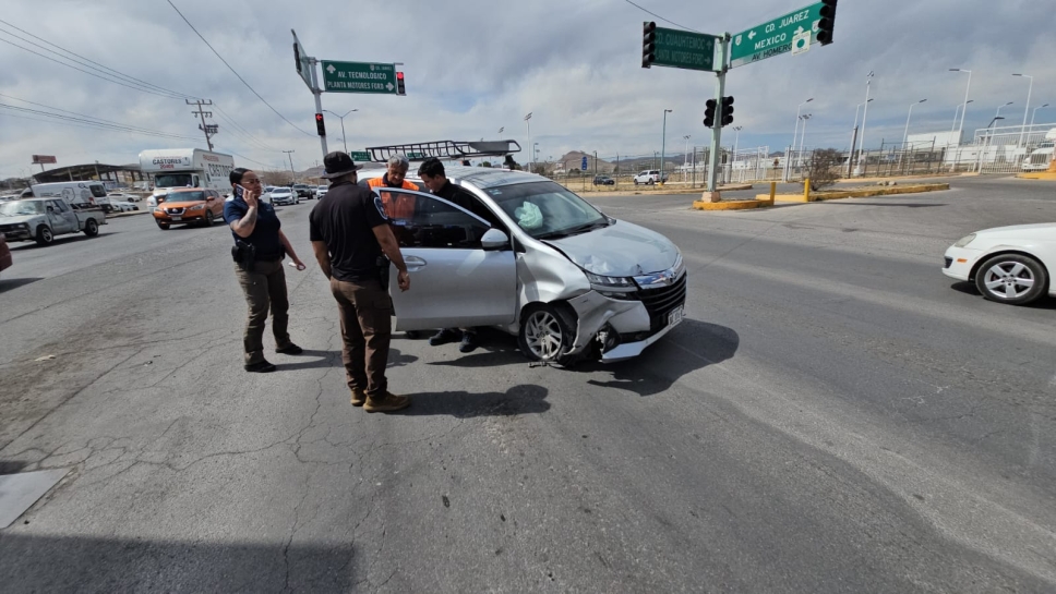 Una patrulla de la unidad de inteligencia policial de la dirección de Seguridad Pública municipal provoco un choque cuando salía de la comandancia Norte para incorporarse a la avenida Homero en sentido de este a oeste al parecer sin la debida precaución provocando que se impactara el conductor de una camioneta Toyota Avanza que circulaba sobre la avenida en sentido de oeste a oeste.