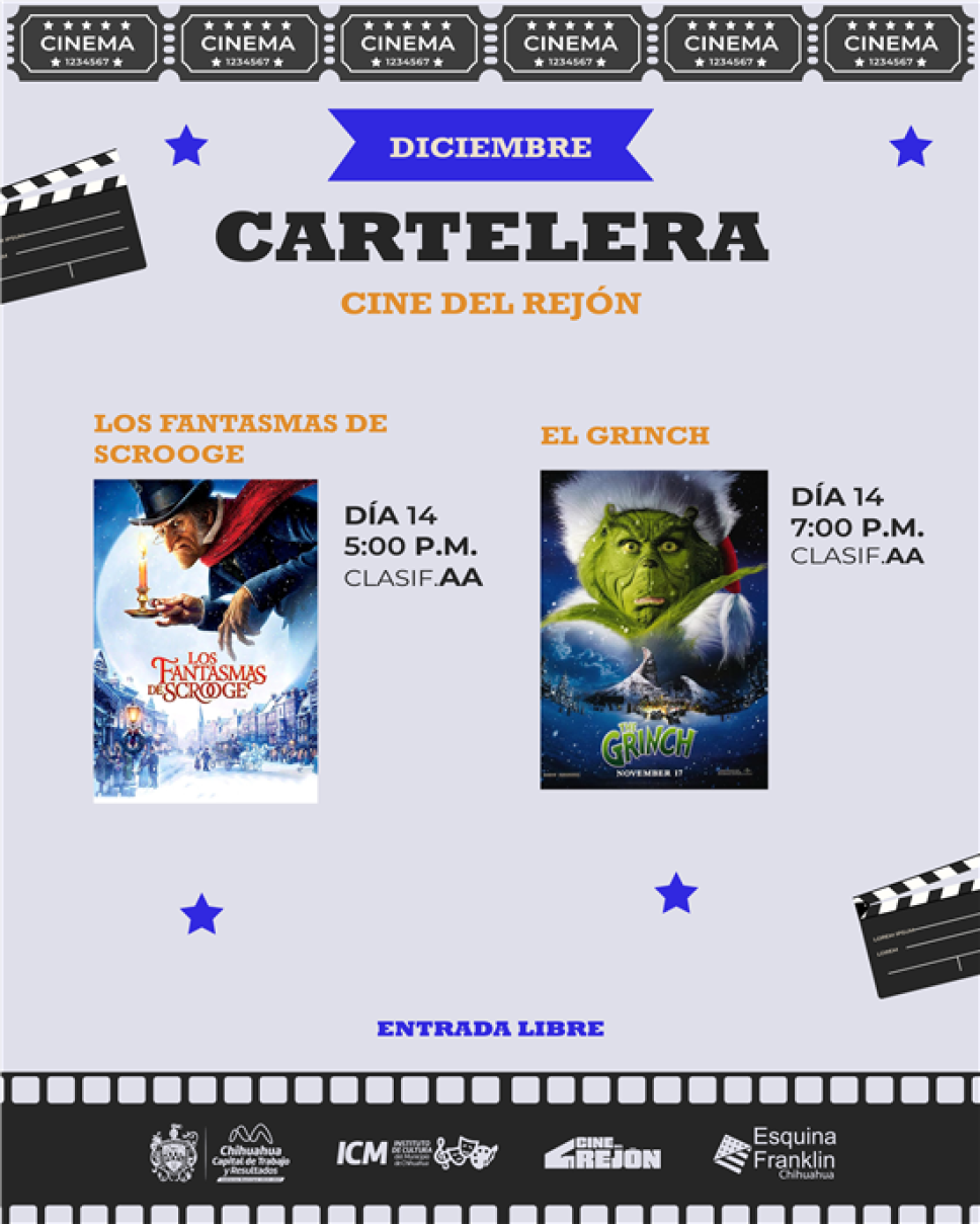 Cine del Rejón presenta función doble navideña gratuita este 14 de diciembre.