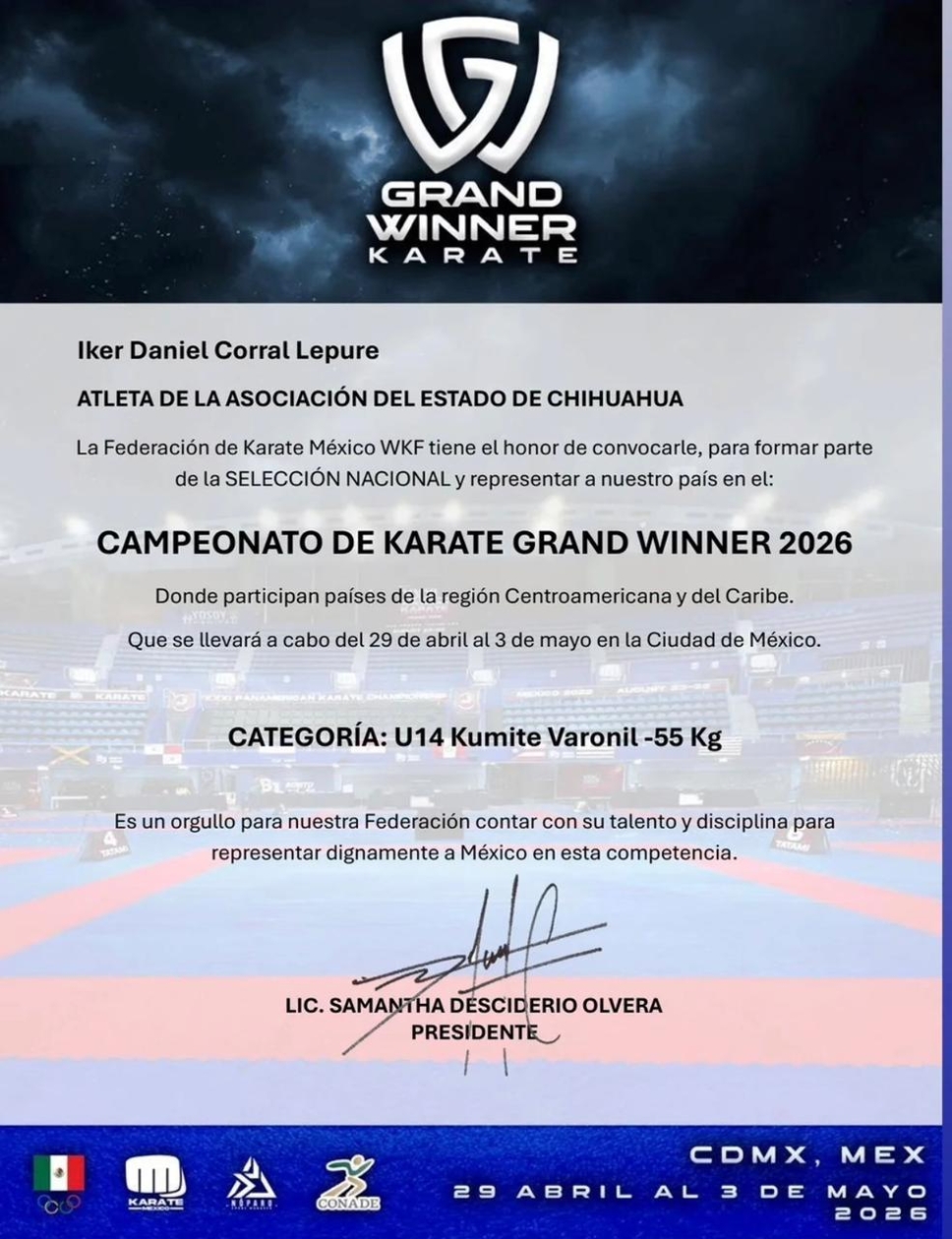 El talento de Ciudad Juárez vuelve a retumbar en el escenario nacional. El joven karateka Iker Daniel Corral Lepure ha sido convocado oficialmente por la Federación Mexicana de Karate (WKF) para vestir los colores de la Selección Nacional.