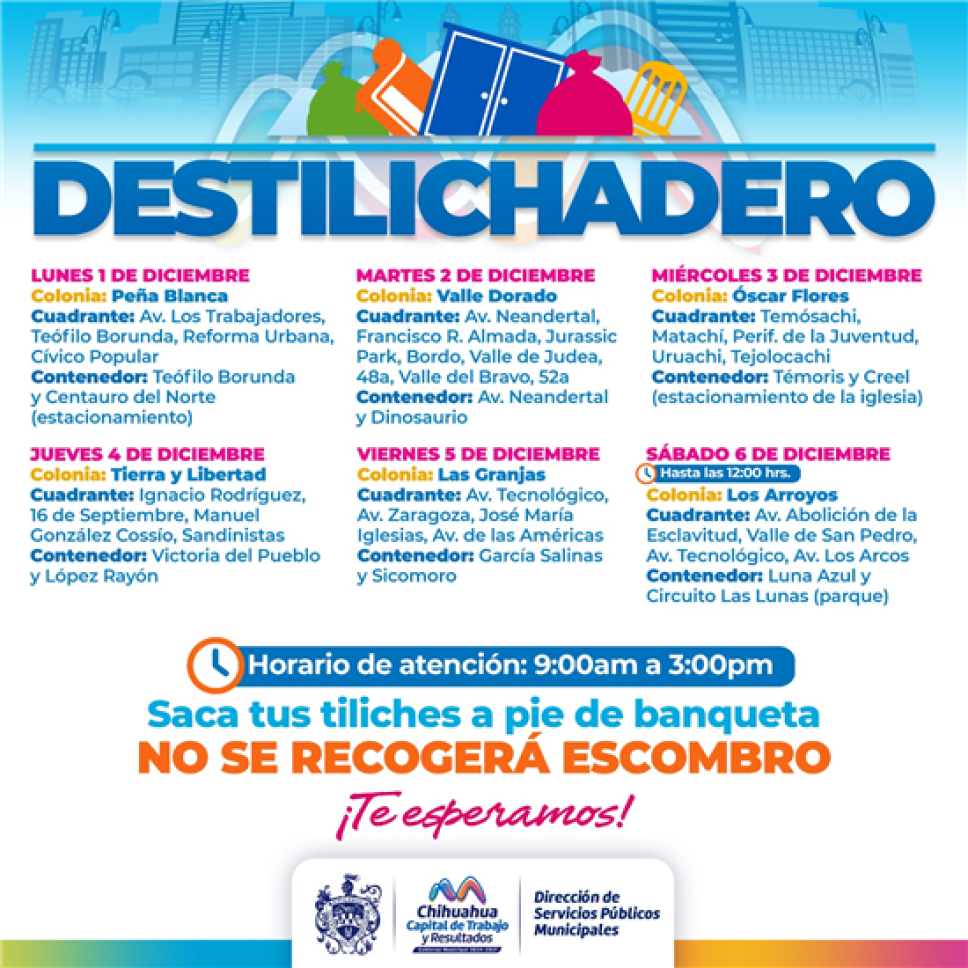 Inicia Destilichadero de diciembre en seis colonias de Chihuahua.