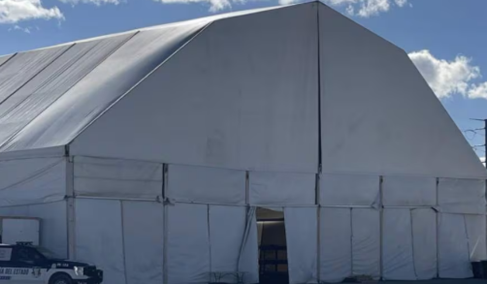 Operativo en "El Punto": Protección Civil y Bienestar supervisan albergue de migrantes.