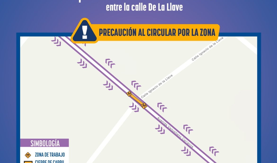 Las labores iniciarán a las 9:00 horas y provocarán el cierre parcial del carril de alta, por lo