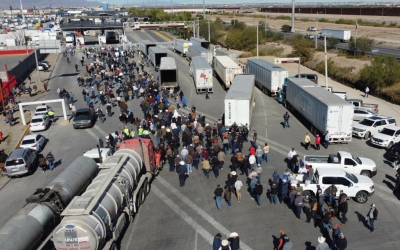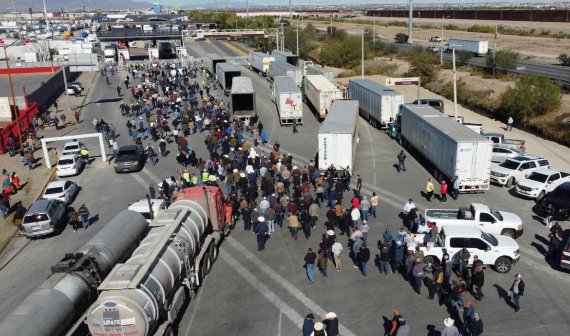 Continúan los bloqueos de transportistas y agricultores en Cd. Juárez.