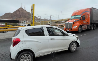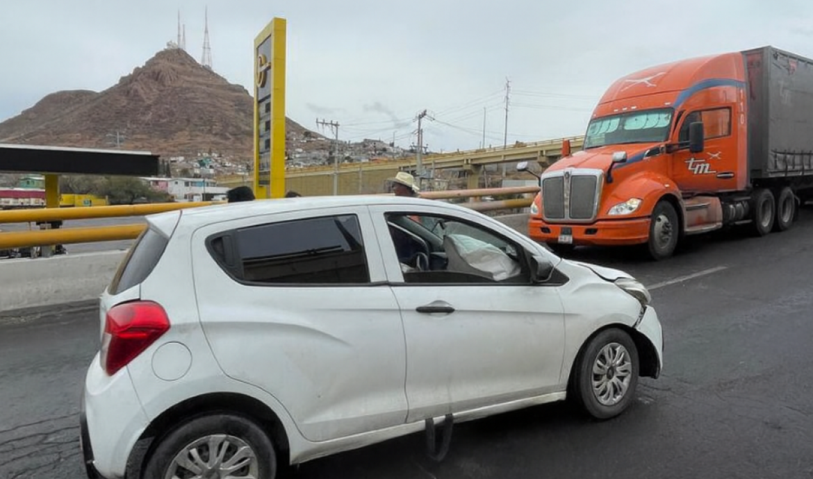 Pavimento mojado provoca fuerte choque entre tráiler y sedán