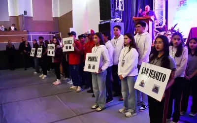 Estudiantes de secundarias y preparatorias de Cuauhtémoc participaron este martes en el conversatorio “Rompiendo el...