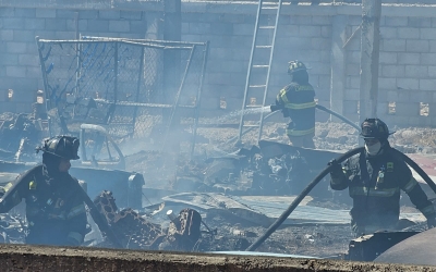 Tragedia en Granjas del Valle: Voraz incendio devora yonke de autos tras descuido.