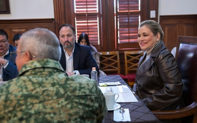 La gobernadora Maru Campos encabezó la sesión de la Mesa Estatal de Construcción de Paz en Palacio