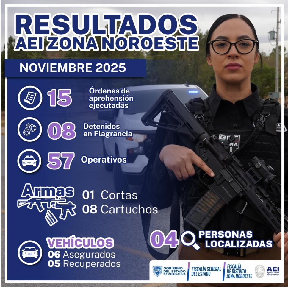 Como parte de las acciones para combatir la delincuencia, la Agencia Estatal de Investigación (AEI) en la Zona Noroeste del estado dio a conocer los resultados obtenidos durante el mes de noviembre.