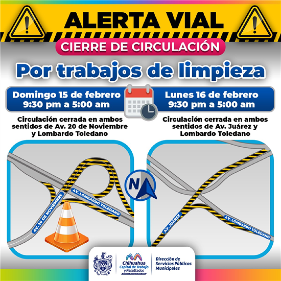 - Domingo 15 de febrero: Cierre total en ambos sentidos del distribuidor vial de la Av. 20 de Noviembre y Periférico Lombardo Toledano.