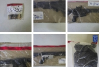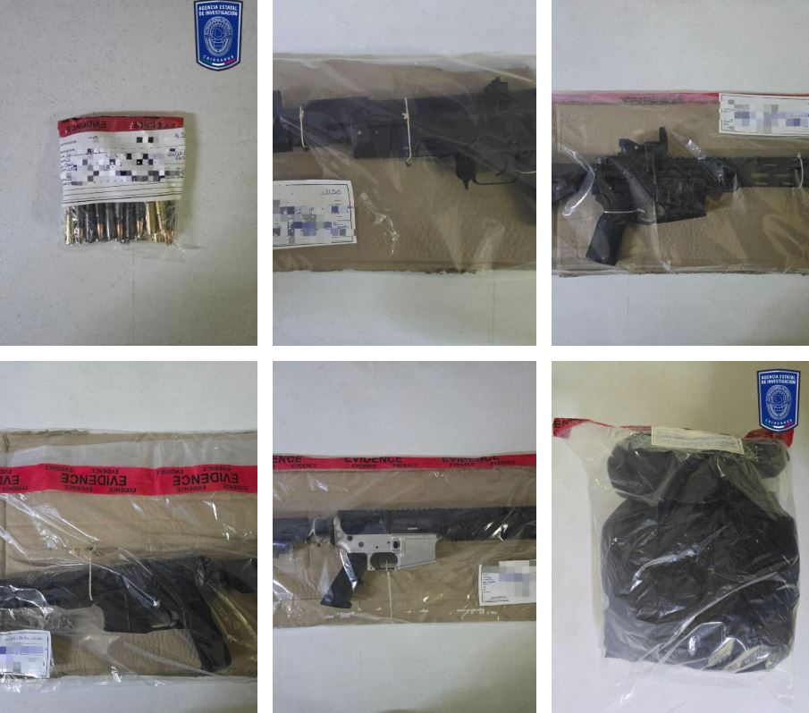 Entre lo asegurado se encuentran cartuchos calibre .223, .380 auto, .45 auto, 9 milímetros y 7.62x39, así como cargadores metálicos y de plástico para armas cortas y largas. También se localizaron cuatro armas largas de diferentes características y modelos.