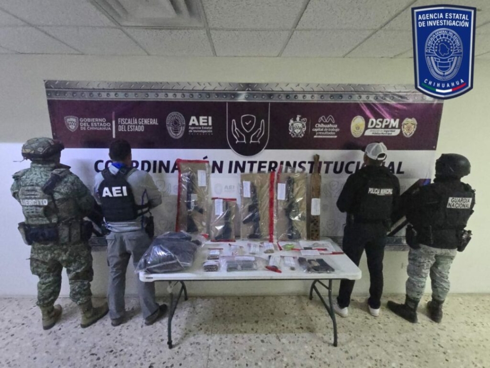 Aseguran armas, cartuchos y droga tras cateo en colonia Granjas de Sacramento.