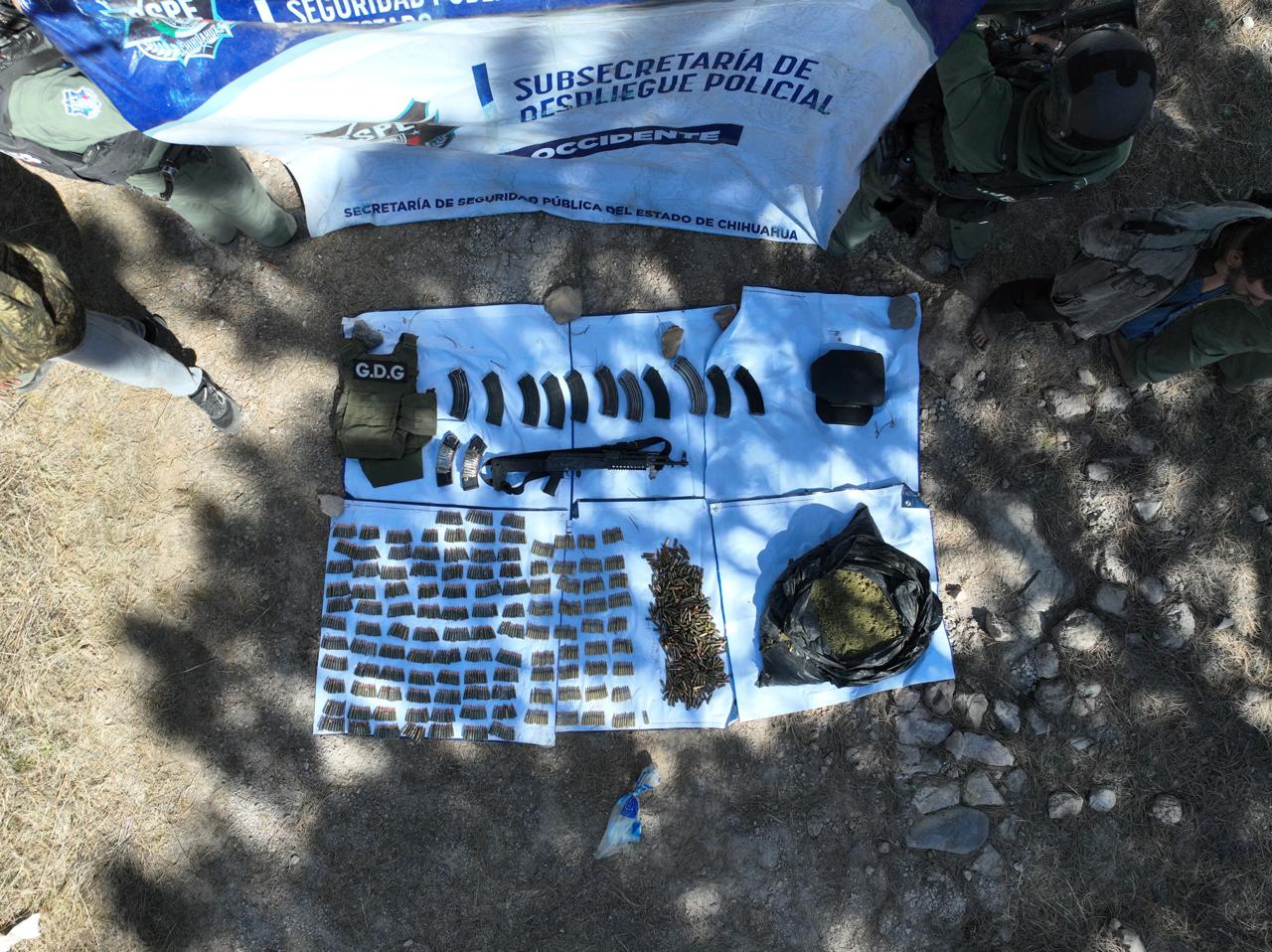 Al inspeccionar la unidad, los oficiales localizaron un arsenal compuesto por un fusil de asalto, 10 cargadores abastecidos y una cantidad superior a los mil 720 cartuchos útiles de diversos calibres. Además del armamento, el grupo mantenía en su poder equipo táctico especializado, incluyendo una mochila y un chaleco con placas balísticas, herramientas comúnmente utilizadas por generadores de violencia en la zona serrana.