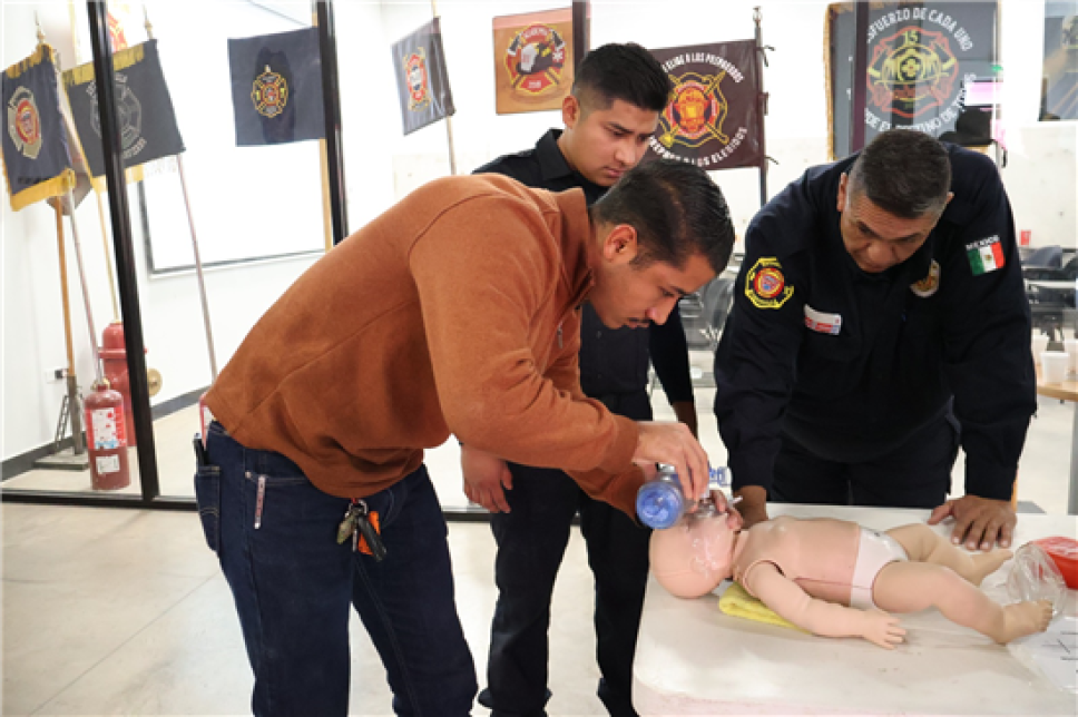 El Gobierno Municipal de Chihuahua lleva a cabo capacitaciones en soporte vital básico dirigidas a elementos del H. Cuerpo de Bomberos, con el objetivo de fortalecer su capacidad de respuesta ante emergencias médicas.