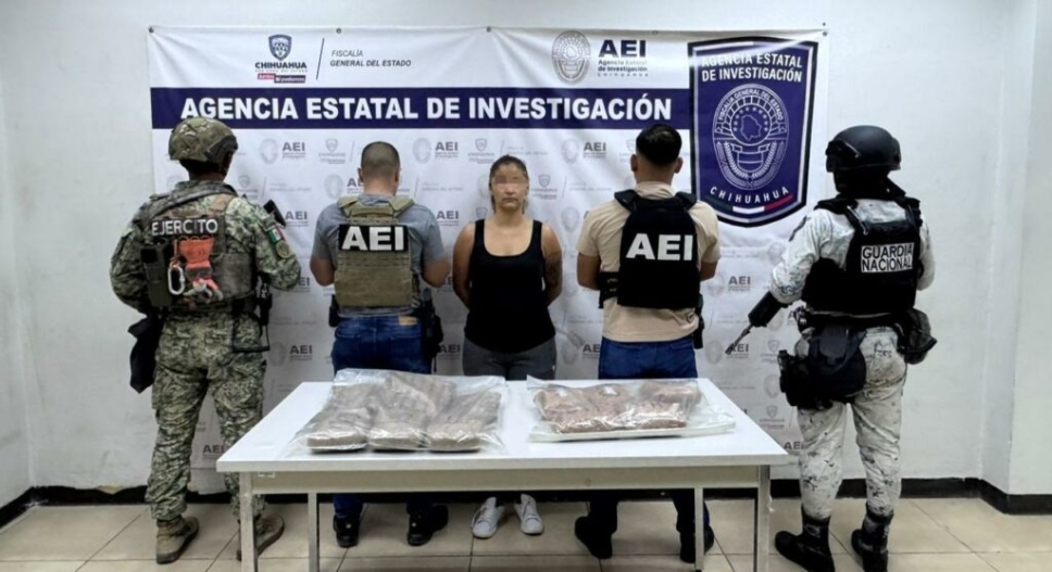 Un operativo conjunto entre elementos de la Agencia Estatal de Investigación (AEI) y la Secretaría de la Defensa Nacional (SEDENA) resultó en la detención en flagrancia de una mujer que transportaba una significativa cantidad de drogas sintéticas. Cecilia Berenice E. S., de 31 años, fue arrestada en posesión de más de 11 kilogramos de metanfetamina y fentanilo.