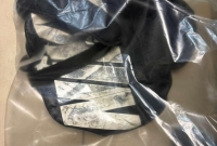 La revisión reveló que la mujer ocultaba en una mochila once paquetes de droga: cinco paquetes de una sustancia granulada con las características del cristal (metanfetamina), con un peso total de 5.270 kilogramos, y otros seis paquetes con pastillas azules marcadas con la leyenda M30, presuntamente fentanilo, que arrojaron un peso de 6.635 kilogramos.