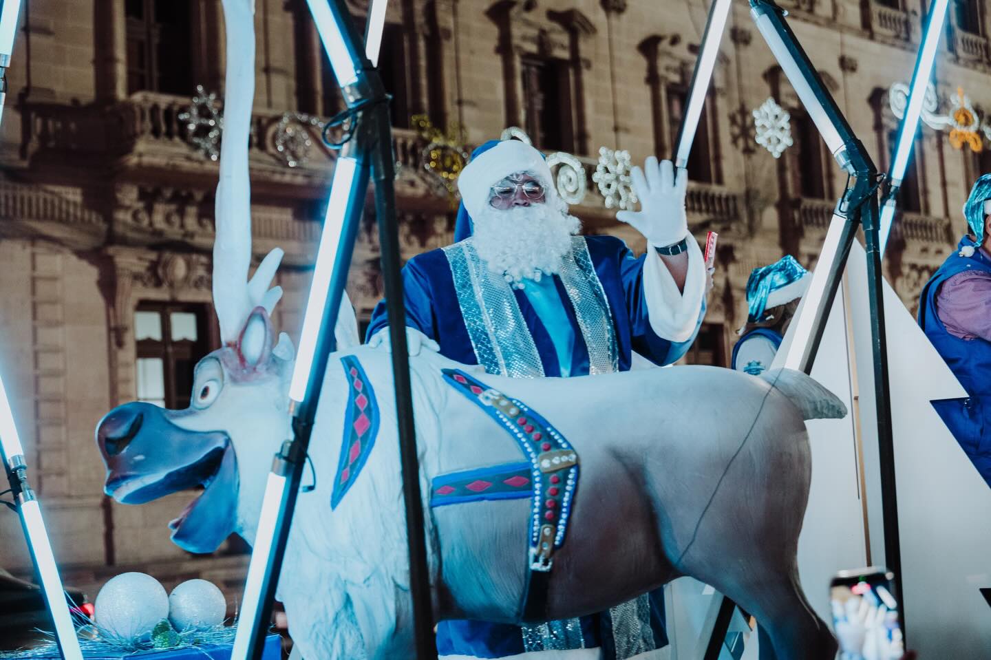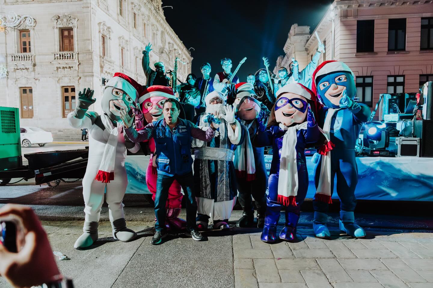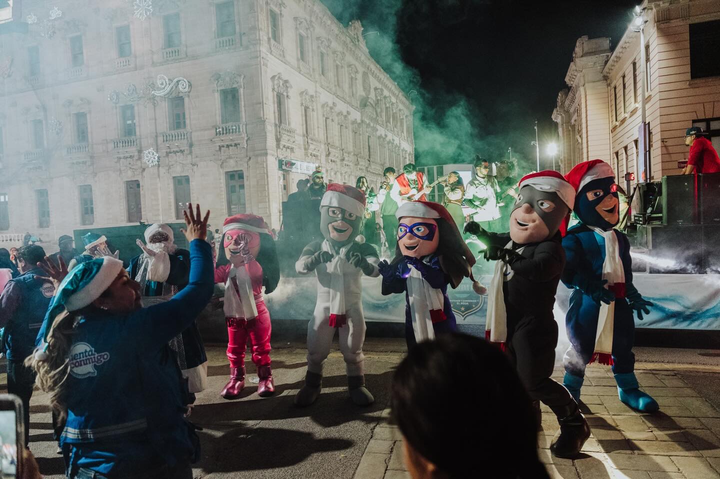 El desfile recorrió las principales calles del Centro Histórico, donde más de 50 carros alegóricos llenaron de alegría y sorpresas a familias completas, especialmente a niñas y niños, quienes convivieron con los superhéroes de Los Aguardianes y recibieron obsequios durante el recorrido.