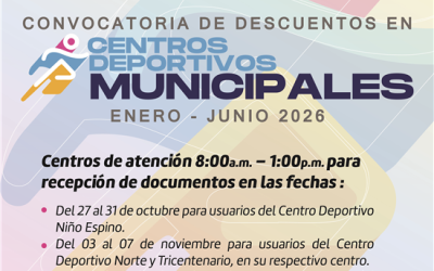 ¡DEPORTE PARA TODOS! Abren convocatoria para becas de descuento en "Centros Deportivos Municipales".