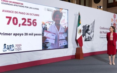 La Secretaría de Bienestar informó que, al 26 de octubre, 70 mil 256 personas damnificadas ya han recibido un primer apoyo económico de 20 mil pesos, además de vales para despensa y enseres