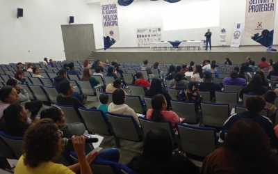 Agentes del Ministerio Público y del GOECHI participan en el Foro de Seguridad Escolar 2025 en Ciudad Juárez para fortalecer la prevención del delito en el núcleo familiar y educativo.