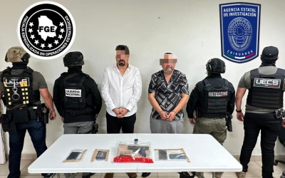 Policías de Investigación de la Unidad Modelo de Atención al Delito de Secuestro de la Fiscalía Especializada en Operaciones Estratégicas capturaron en flagrancia a dos presuntos extorsionadores